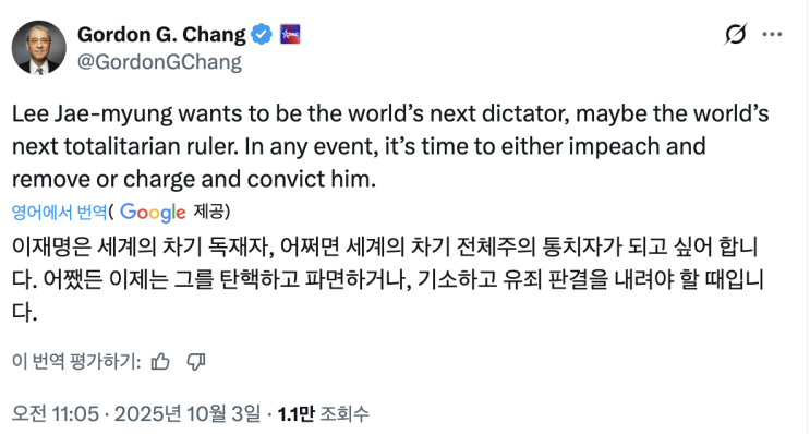 [대한민국] 모스탄, 세계 대전 언급, 고든창 박사, 이재명 차기 독재자