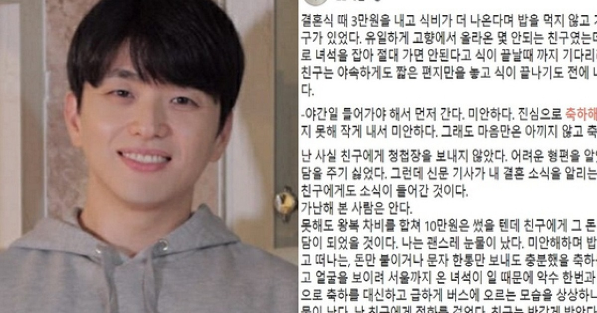 | '축의금 3만원 낸 친구' 눈물의 사연 주인공 밝혀졌다 | 발명도둑잡기(118.216) | 11.15 | 28 | 0 | |